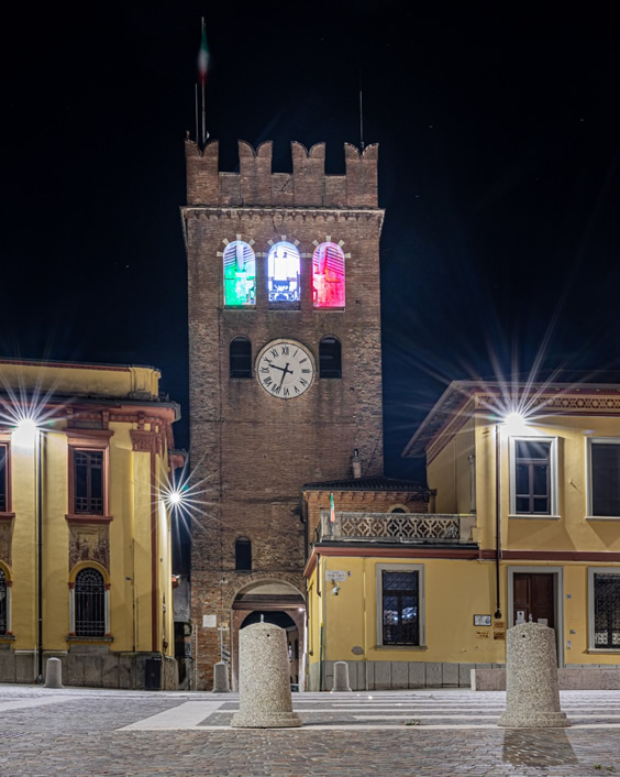 Posta sul punto più alto del paese, piazza Arturo Pasotti, costituisce ancora oggi porta d’accesso al borgo Castello. Viene catalogata tra le costruzioni tipicamente difensive; la sua posizione permetteva infatti la protezione del territorio dalle incursioni dei Visconti di Milano e dai cremonesi.